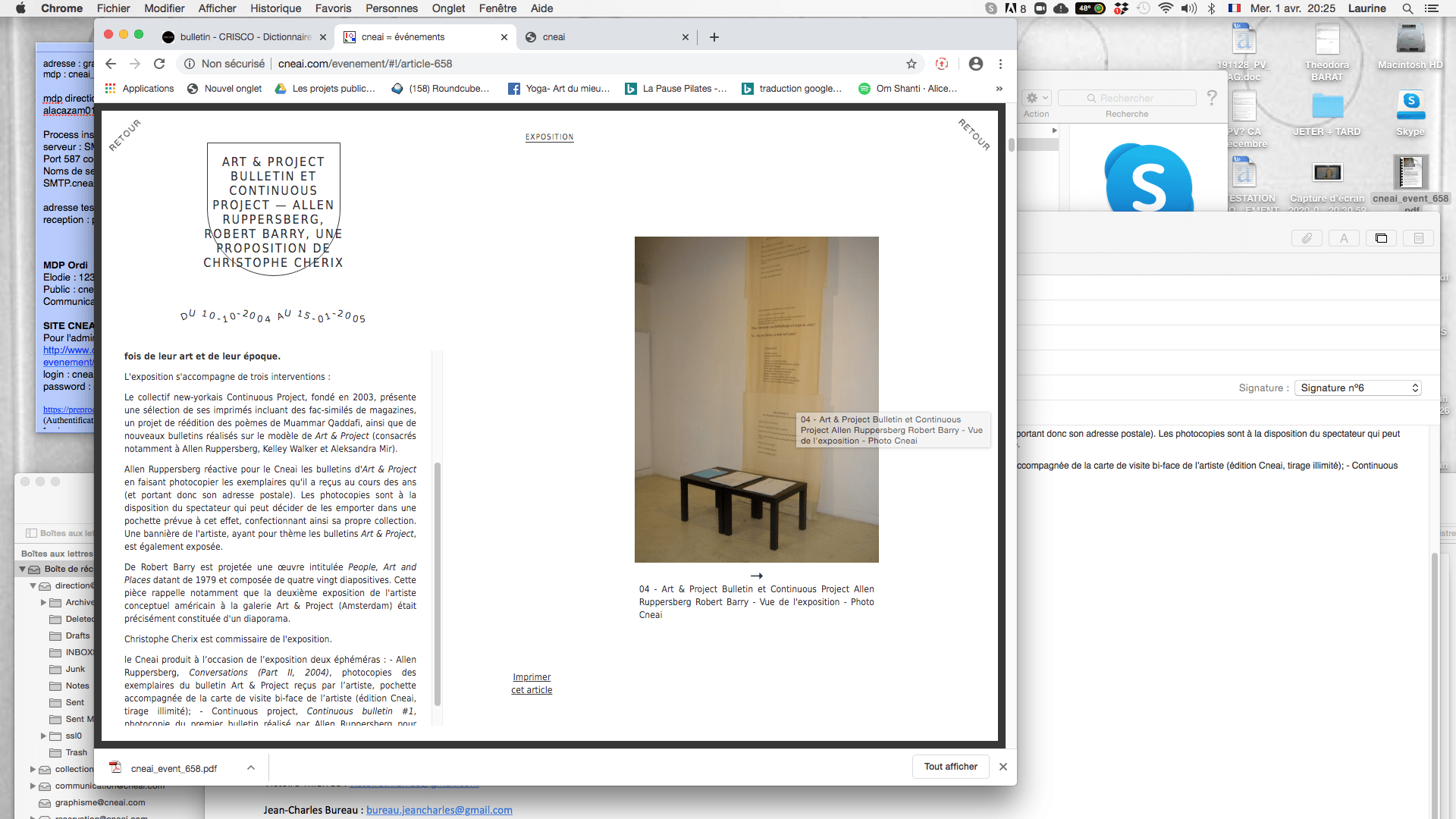 En 2004, pour l’exposition des Bulletins au Cneai (commissaire invité : Christophe Cherix) : Continuous Project réalise de nouveaux bulletins sur le modèle de Art & Project, consacrés notamment aux artistes Allen Ruppersberg, Kelley Walker et Aleksandra Mir, qui sont imprimés et exposés. Christoph Cherix et Continuous Project en font également un chacun.