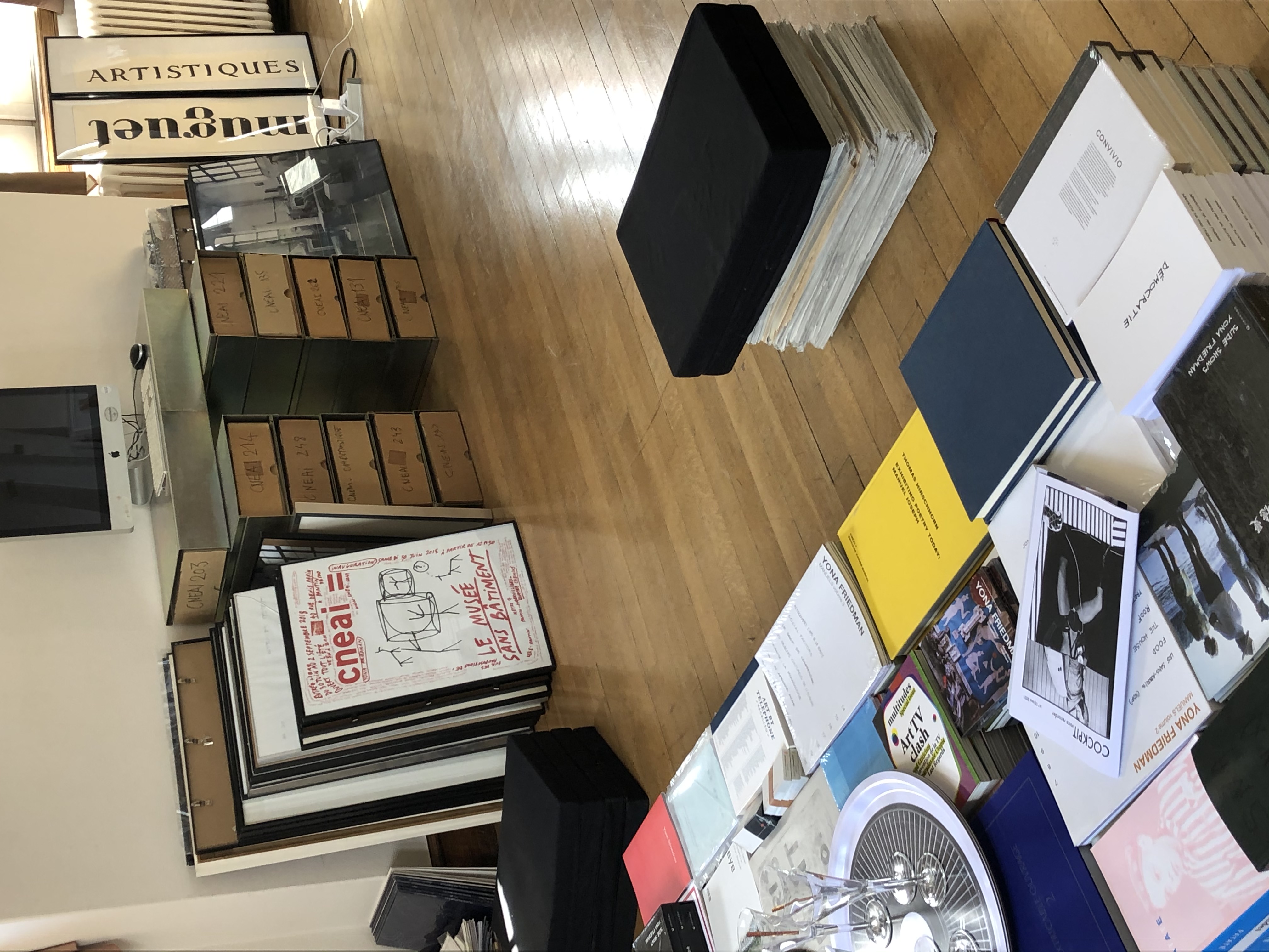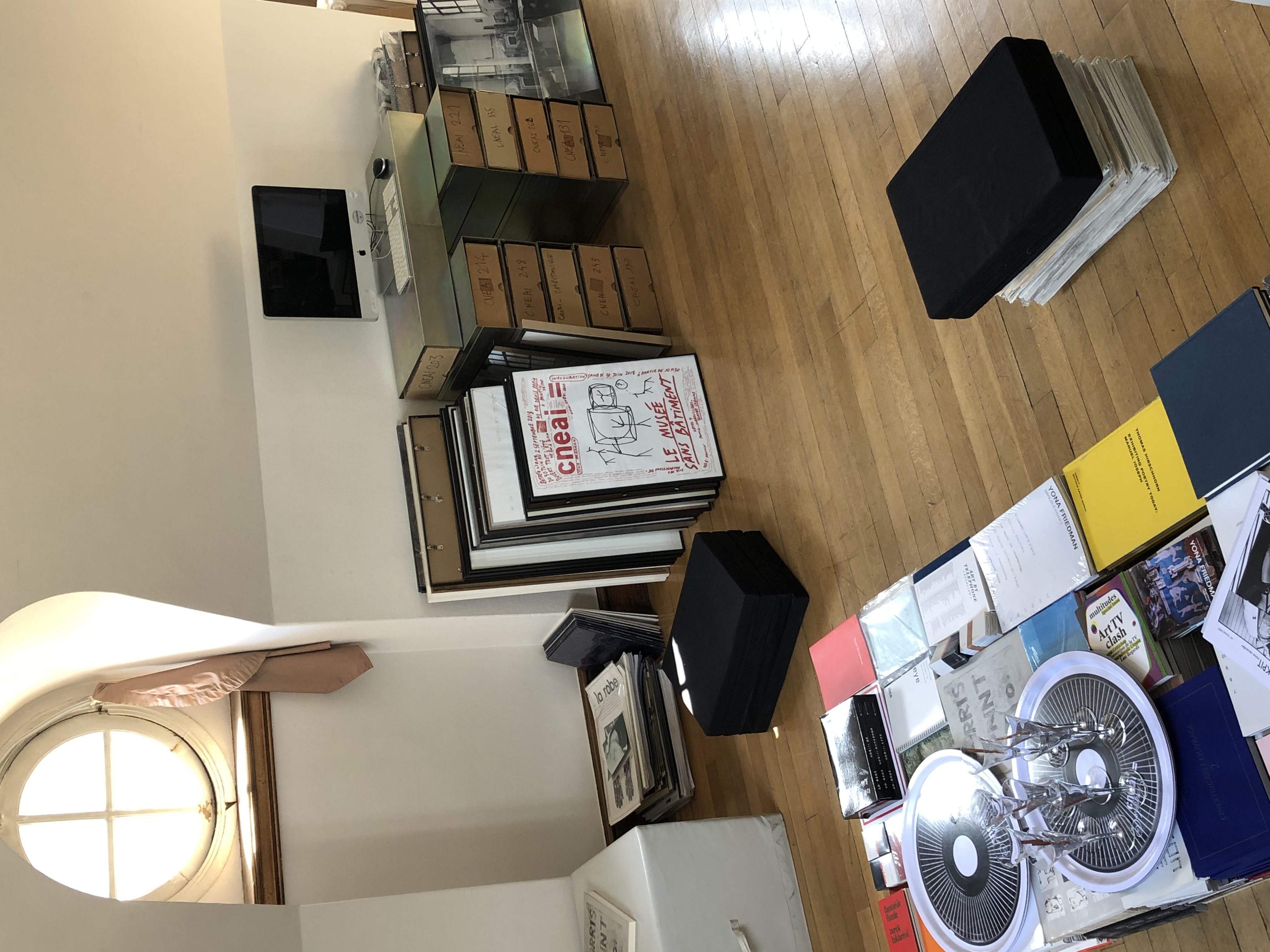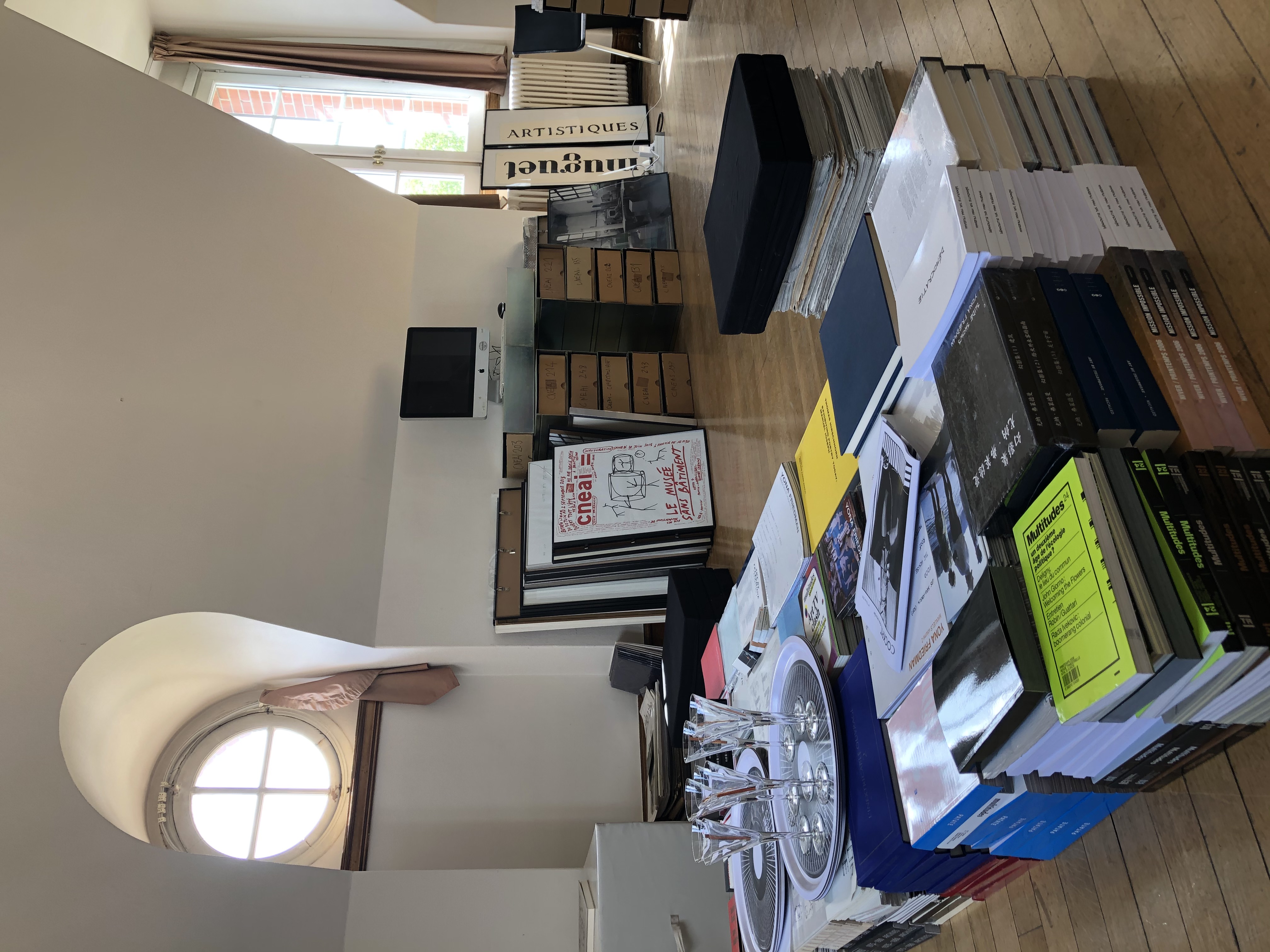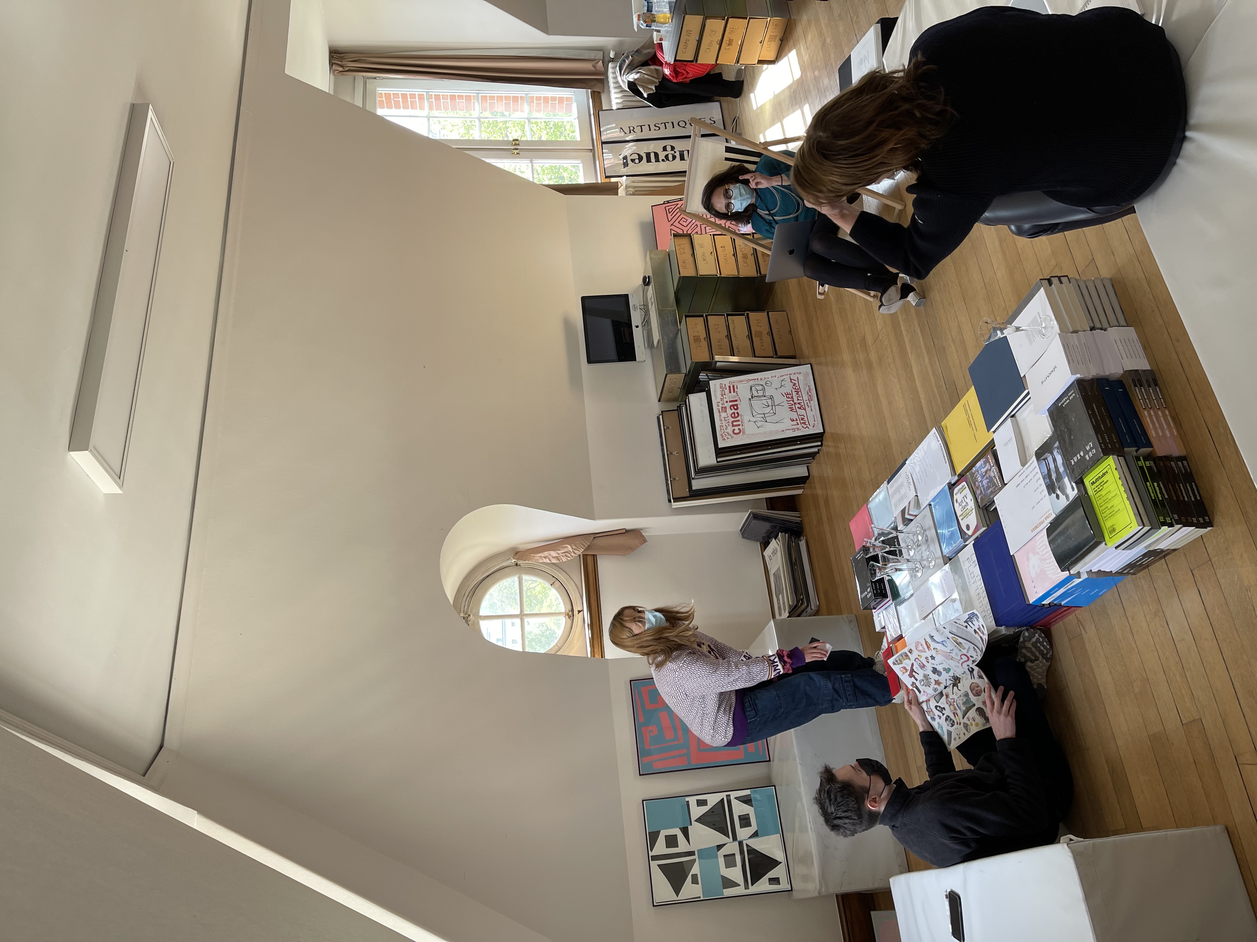 Le dispositif Open Office est accessible à tous : le Cneai accueille sur rendez-vous dans ses bureaux enseignants, chercheurs, artistes, étudiants, amateurs et curieux pour échanger sur des projets en construction, des recherches en cours. Open Office est également l’occasion pour le Cneai d’ouvrir ses collections au public : livres, multiples, éphéméras.