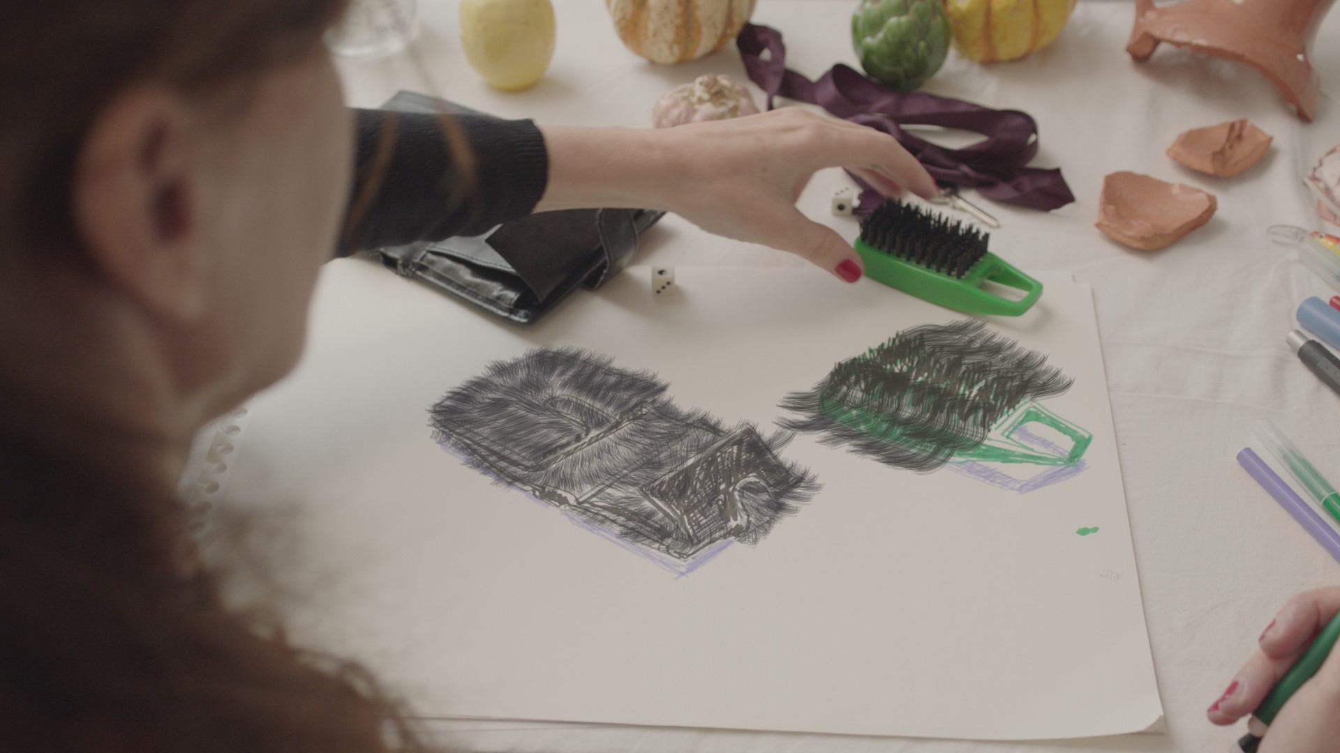 Dans le cadre du cycle Enregistrer au Cneai, Lou Le Forban propose une version installée de son premier court-métrage, Le bal des choses, produit au Fresnoy, accompagnée de deux séries de dessins. Au cœur de cette exposition seraient les objets, leur propension à mener une vie autonome et à engendrer une narration multiple et labyrinthique. Progressivement ces objets se voient adjoints des gestes : saisir, caresser, frotter, lancer, casser, vendre, voler, jouer… Passant du dessin, à l’animation et à l’image filmée, les œuvres exposées détournent des éléments du quotidien pour glisser progressivement vers l’absurde, devenant dans un animisme joyeux, objeu pour reprendre le terme de Francis Ponge. Ainsi a lieu la rencontre explosive entre une brosse raide et un portefeuille poilu, une cafetière boit la tasse, une orange pleure sans que l’on sache l’objet de son chagrin, des gants respirent avant une bonne matinée de ménage, une corde après avoir levé l’ancre lie des amants, et on ne sait plus qui mène la danse.
