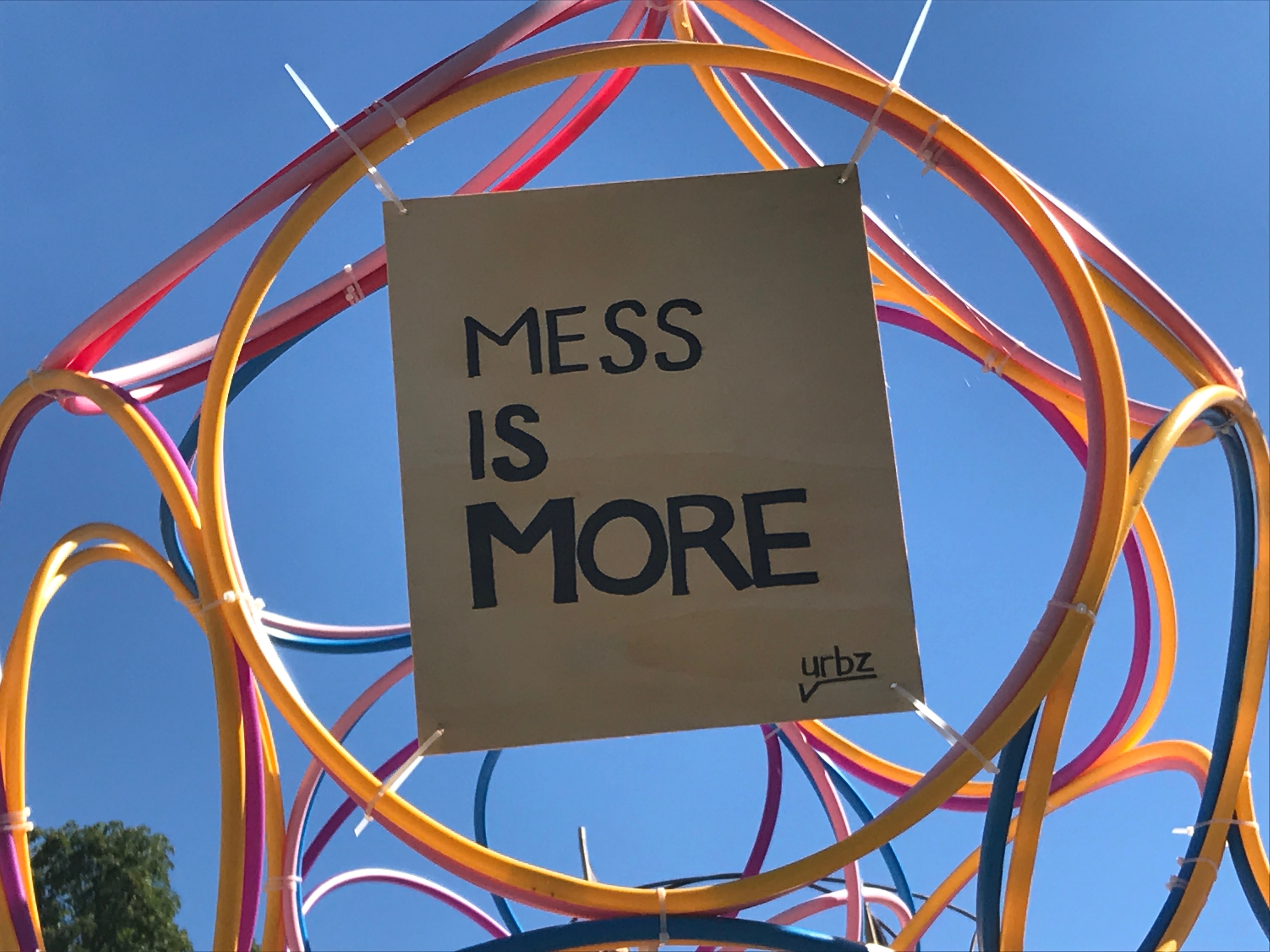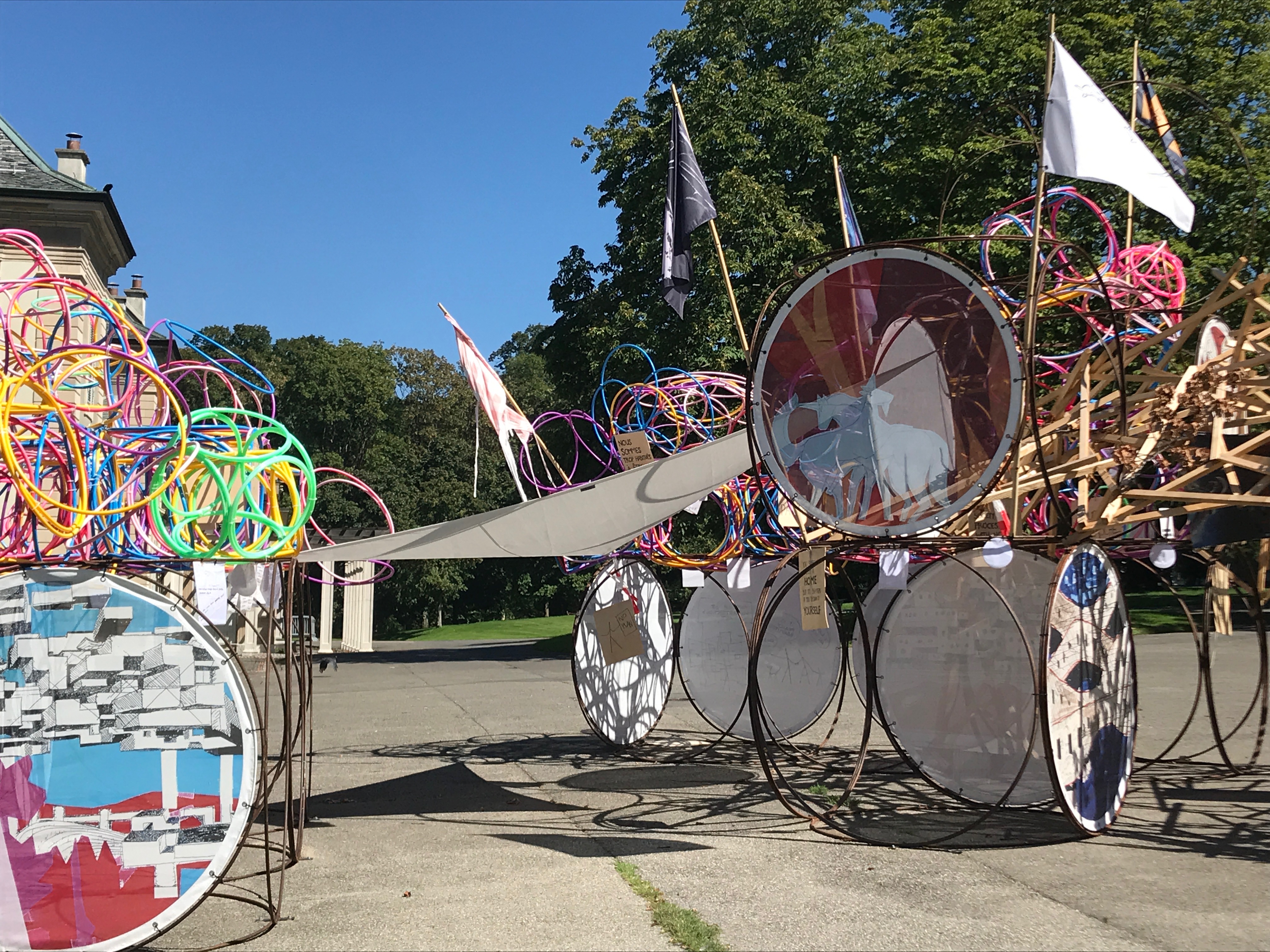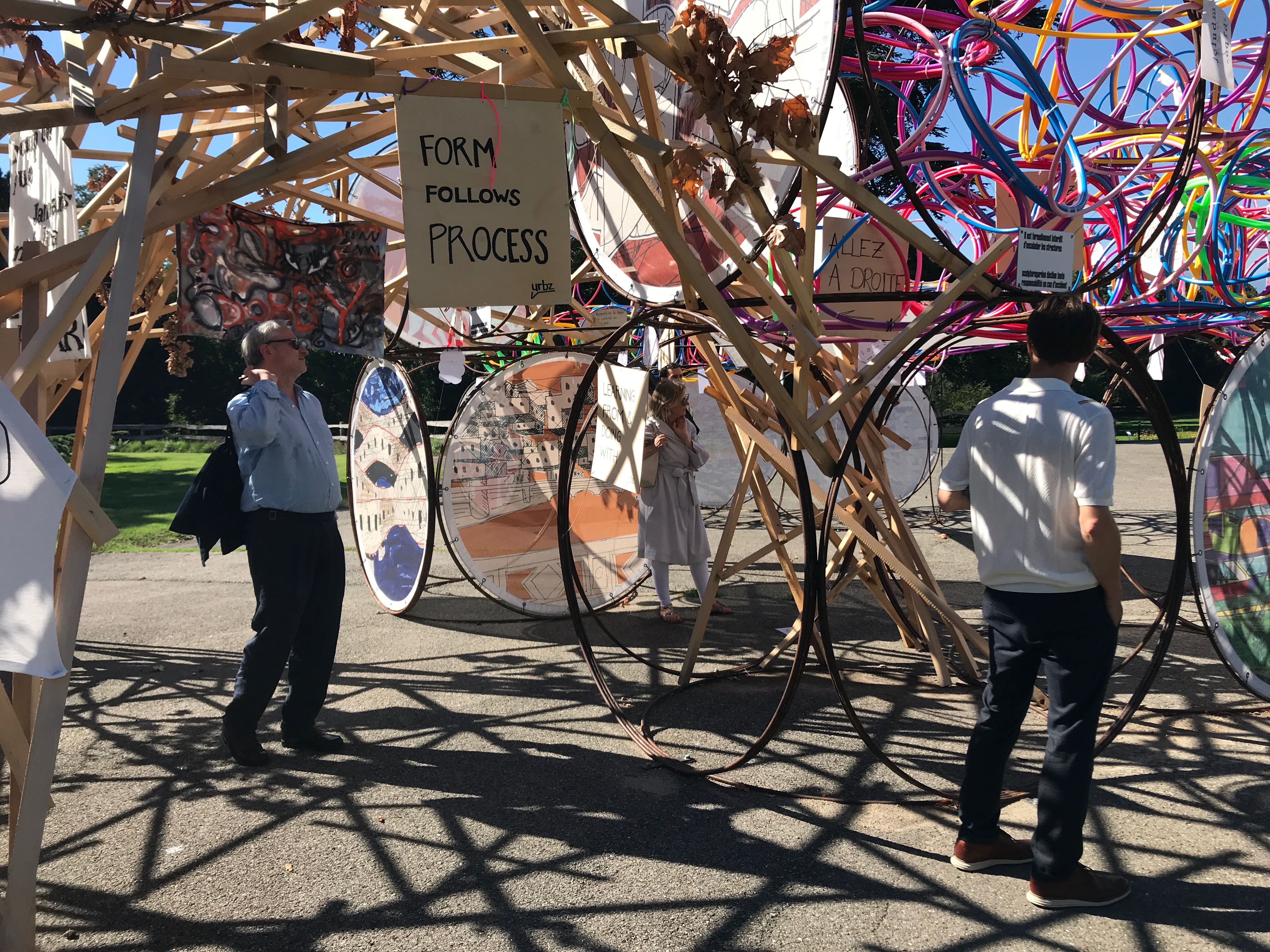 Le Musée Sans Bâtiment, réalisé par Yona Friedman, consiste en une vingtaine de cubes, conçus à l’aide de cerceaux en acier de grande taille - 185 cm de diamètre - disposés librement sur le terrain. « Ils servent de support aux œuvres d’art réalisées à partir d’emballages ou d’autres objets : œuvres graphiques, collages, photographies ou graffitis en partie réalisés par le public. » — Yona Friedman