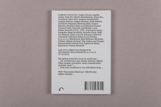 Junk Jet N°6 says: The global is but the local on world tour. On this tour the local is not preserving identity - be that cultural, political, or social, but it is re-inventing itself, as art, activism, or enterprise. The local even aims at becoming a global subject, without knowing what forces - be that swarm, viral, or whatever, this depends on. The local is more or less ignorant about the www processes, but it is ready to get itself into anything - be that souvenirs, ruins, folklorisms, vernaculars, clichés, promises, romanticisms, naturalisms, exotisms. Junk Jet N°6 is crazy about things of local time and place, in the form of objects, images, gifs, videos, sounds, architectures, or reflecting texts. Junk Jet comes with works from your localhost, or your local wifi kebab-shop...