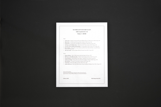 The third installment of Allen Ruppersberg’s project that subjectively explores the documentary history of Post-War American popular music and music graphics. With album covers designed by the artist, each record features tracks culled from 78 and 45 rpm records found in flea markets, antique malls, and junk shops.