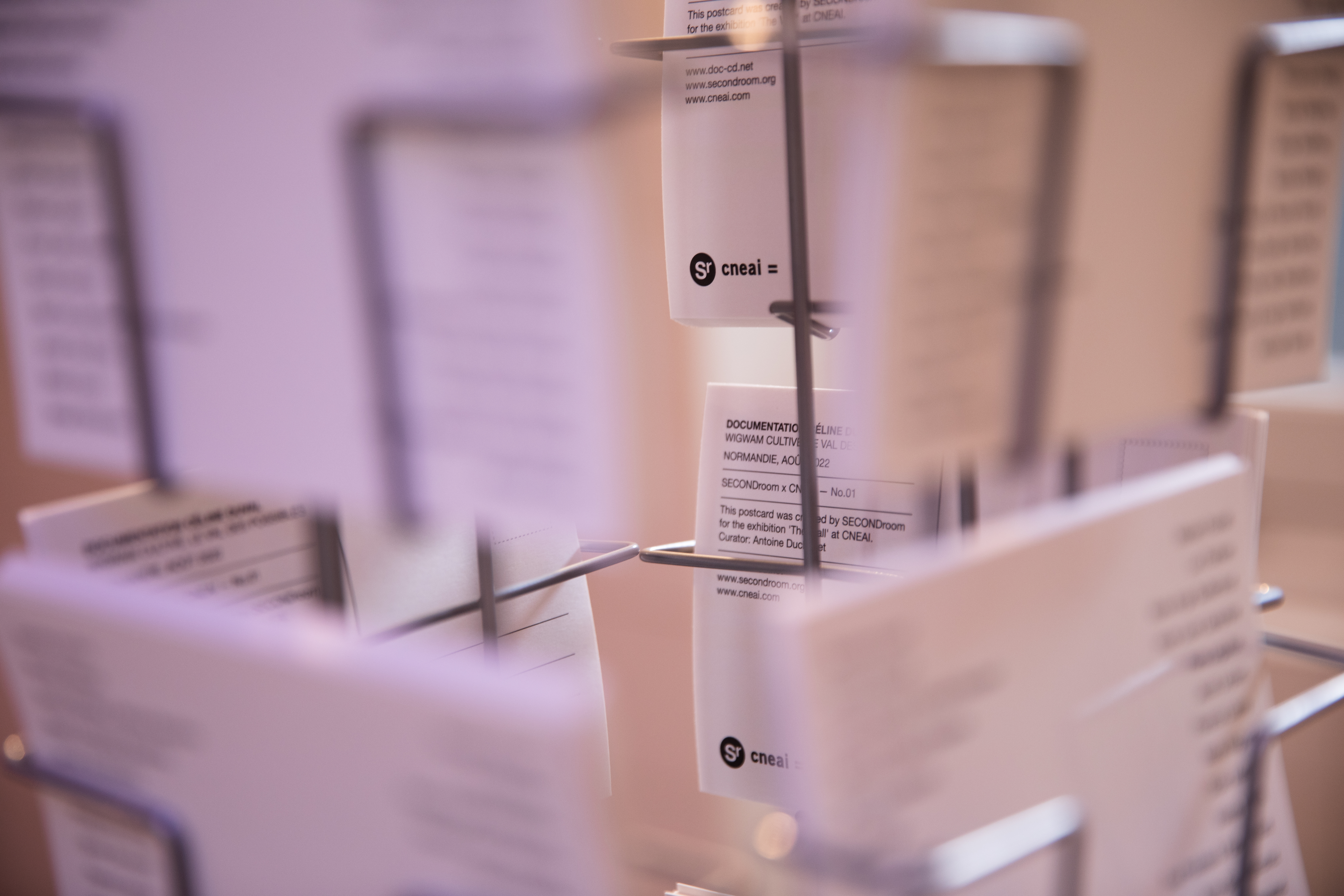 Série de cartes postales réalisées par des artistes ayant contribué aux recherches du Cneai : A Constructed World, Koenraad Dedobbeleer, documentation Céline Duval, Conny Purtill, Lee Ranaldo et Leah Singer.