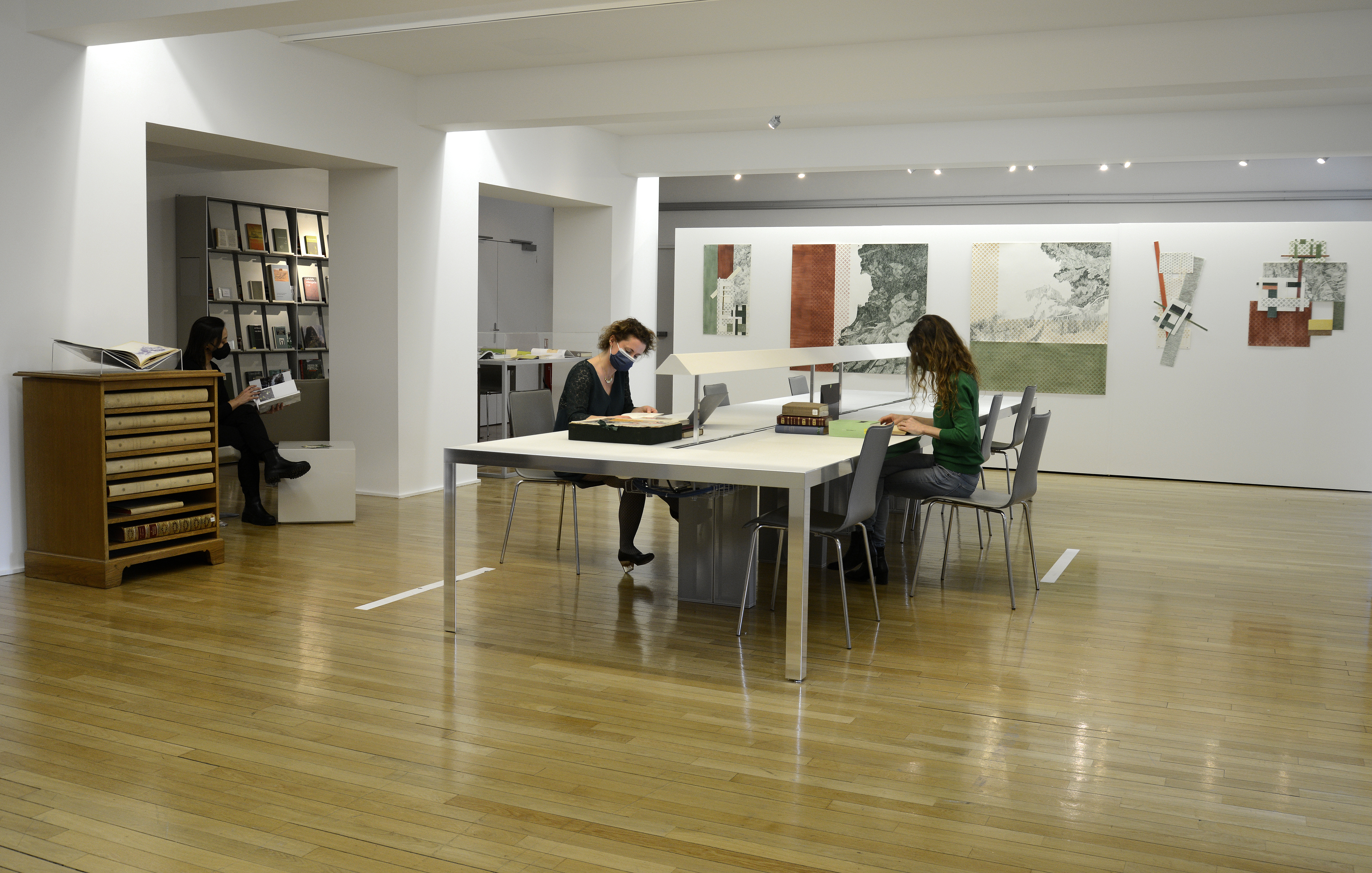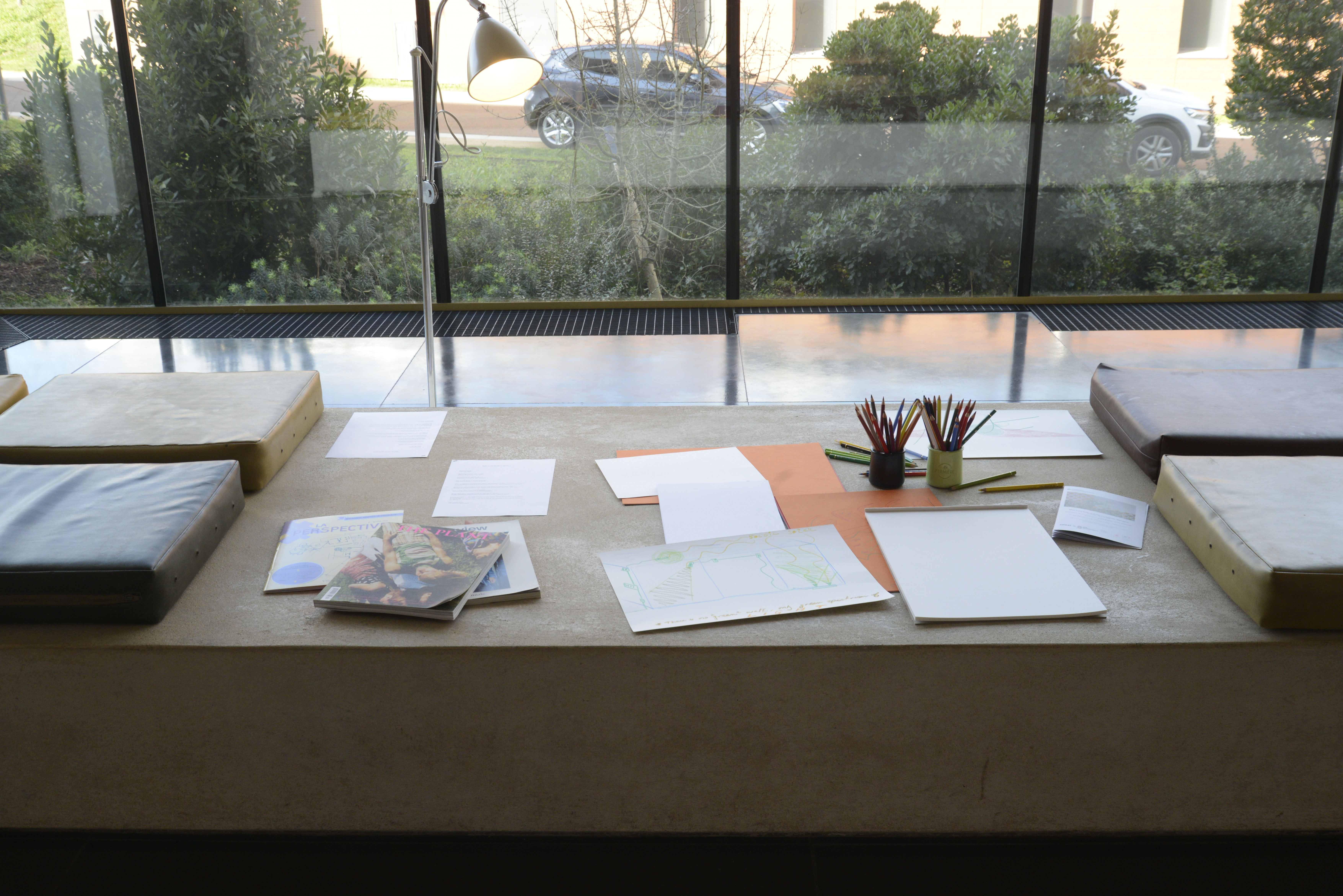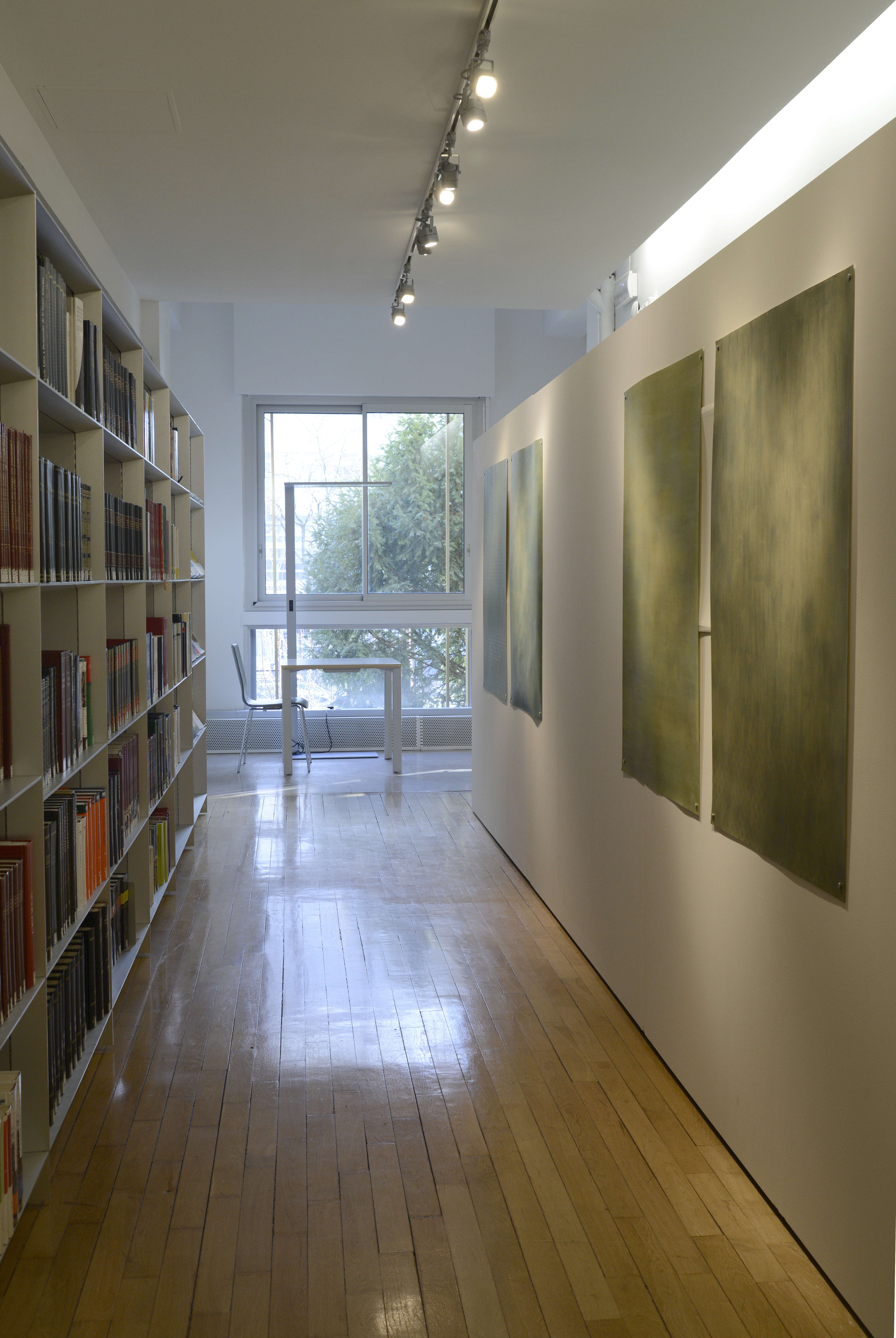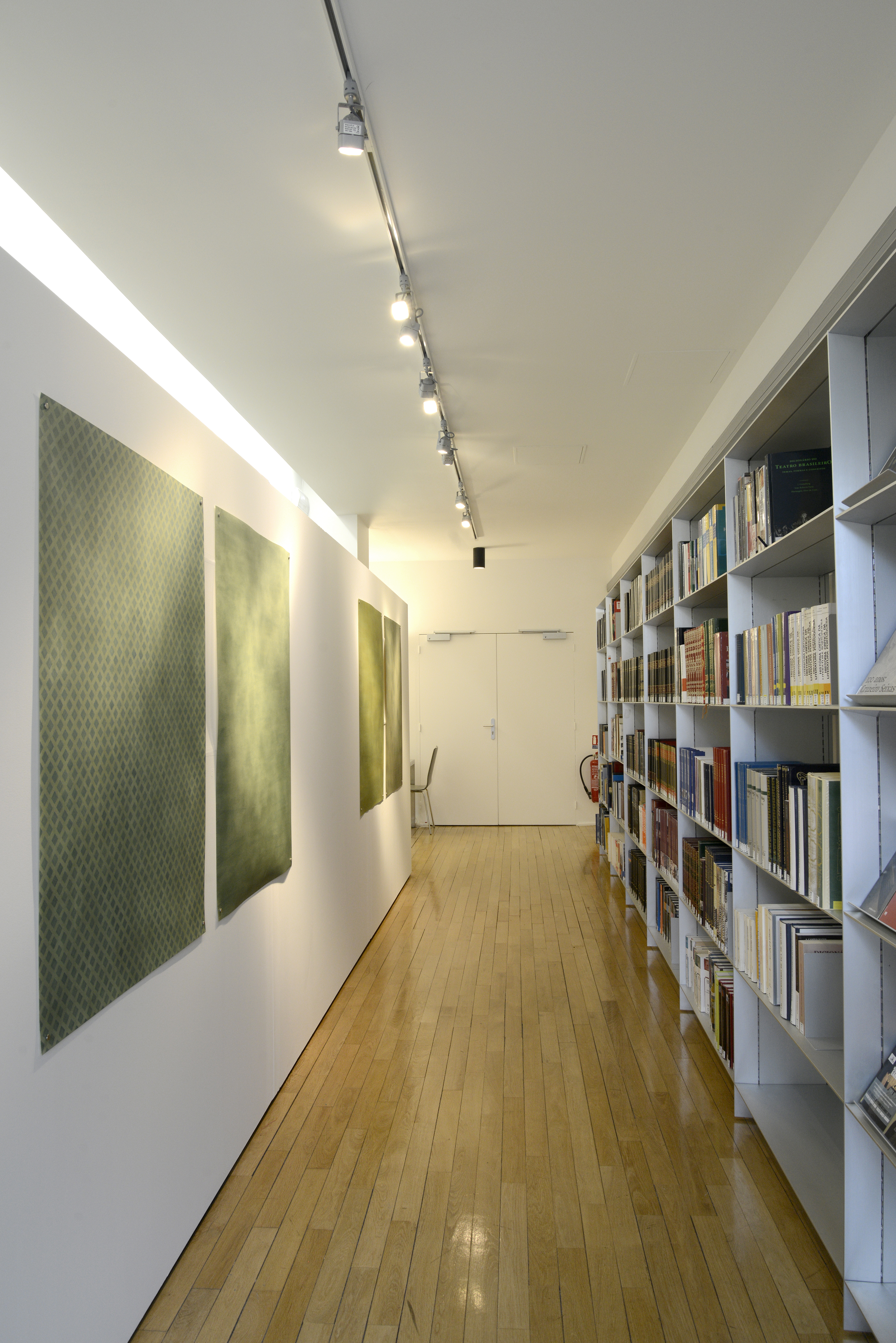 Dans les locaux de la bibliothèque de la Fondation Calouste Gulbenkian – Délégation en France et en dialogue avec ses collections, Gabriela Albergaria présente une œuvre dont la préparation a été précédée par un atelier de dessin conduit par l’artiste dans le parc de la Cité Universitaire de Paris et les locaux du CNEAI. Un endroit de convergence de cultures, la Cité Universitaire s’offre comme le lieu d’élection d’une rencontre de regards autour une seule couleur susceptible d’accueillir toutes les nuances que nous n’avons pas encore vu, que nous n’avons pas pas encore aperçues, peut-être pas encore crées. Où sont les couleurs ? Dans le monde comme Bergson le pensait, où dans notre esprit ? Ou alors, peut-être, dans un entre-deux qu’il est à nous d’engendrer ? Dans la perspective d’un partage de regards, l’artiste a travaillé la question qui donne le titre à l’exposition au travers de la pratique du dessin, faisant de la recherche artistique une forme d’ouverture sur un savoir nouveau, au caractère à la fois plastique et linguistique. Chiara Vecchiarelli